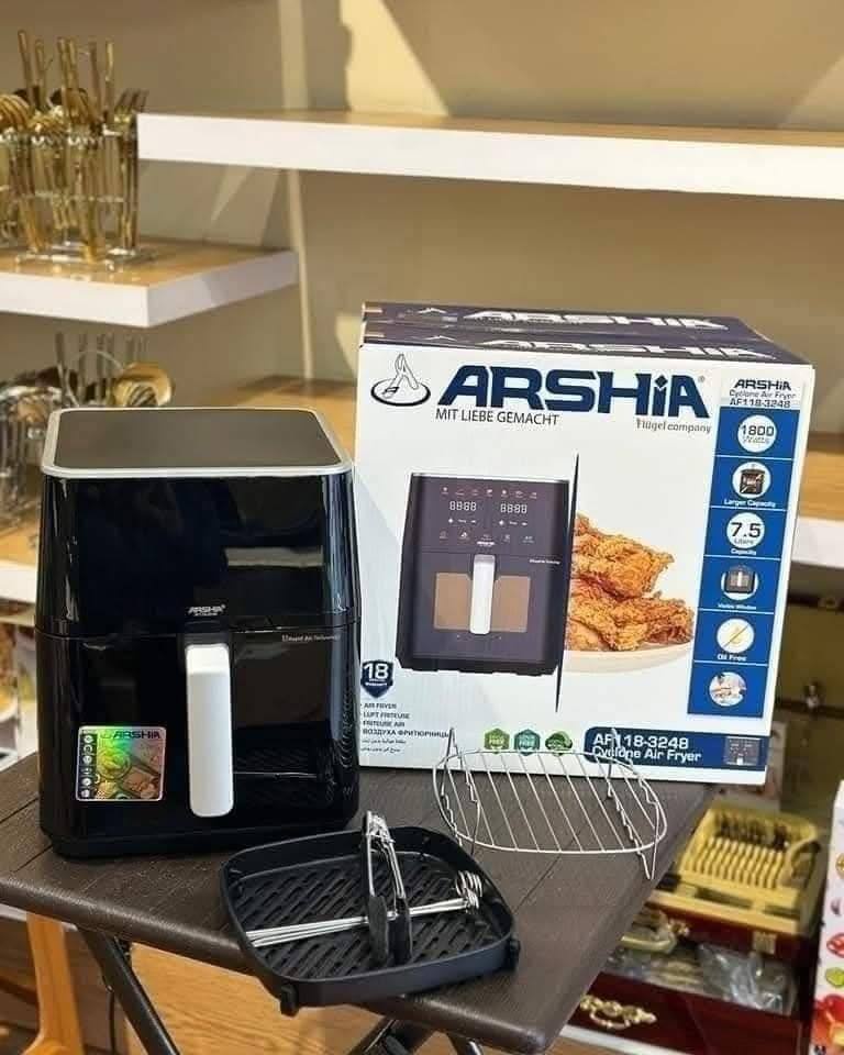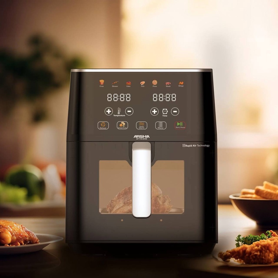 دلوقتي تقدر تحضّر أكل صحي بدون نقطة زيت، بسرعة وسهولة، مع القلاية الهوائية المتطورة من ARSHIA الألمانية – خامة متينة × تصميم عصري × أداء مضمون.