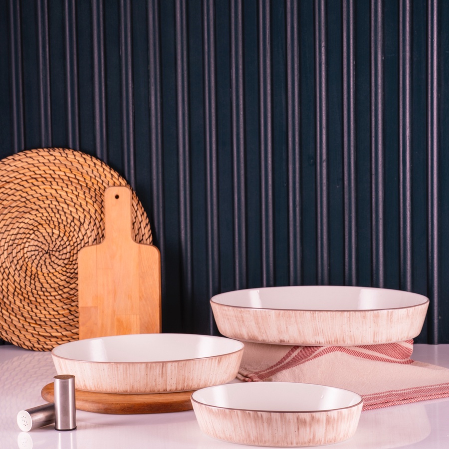 طقم طاجن بورسلين حراري 3 قطّعه بيضاوي - Beige