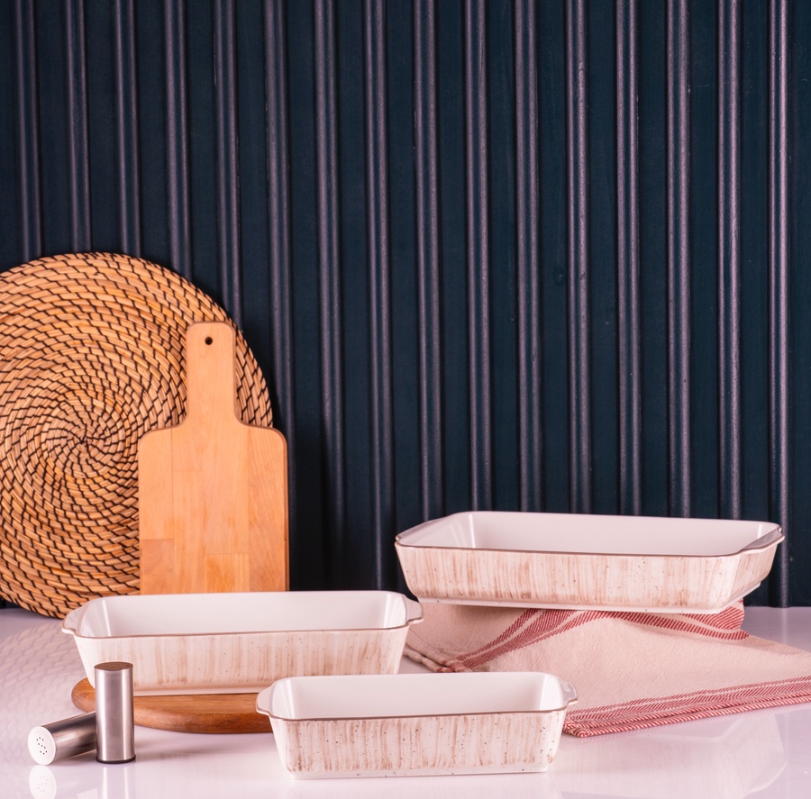طقم طاجن بورسلين حراري 3 قطّعه مستطيل - Beige