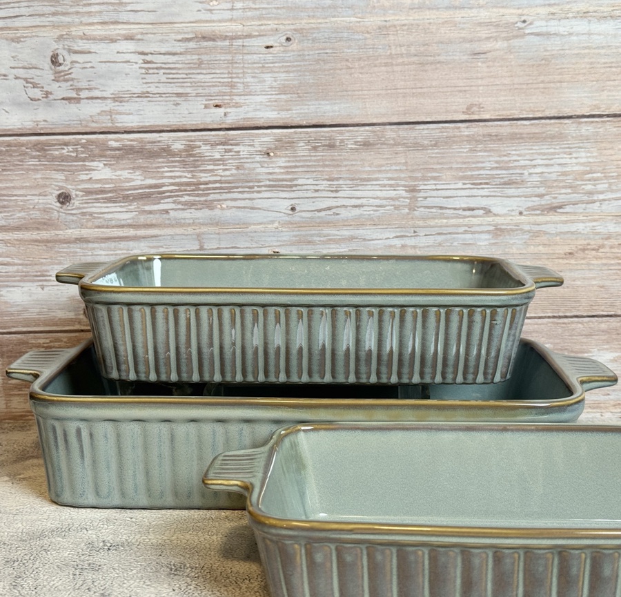 طقم طواجن أنيق من ماركة كارولينا، بتصميم مضلع عصري وخامة بورسلين عالية الجودة، مثالية للتقديم والطهي في نفس الوقت.