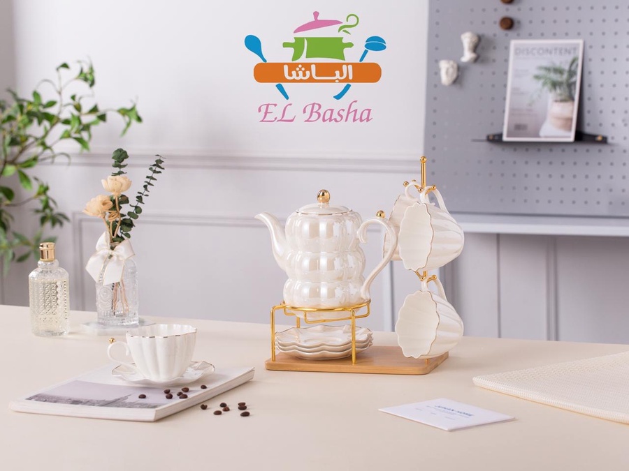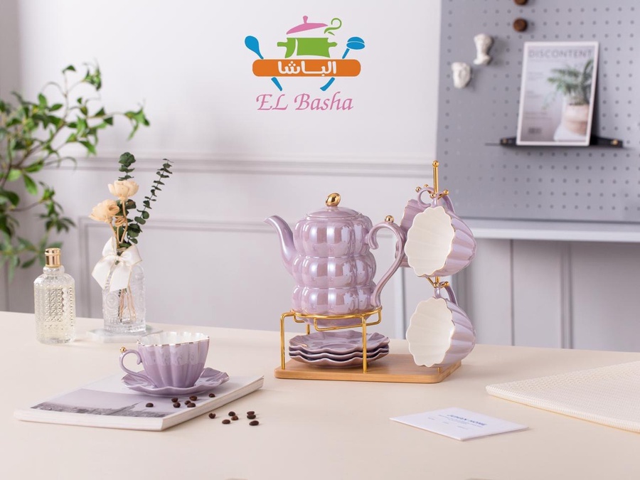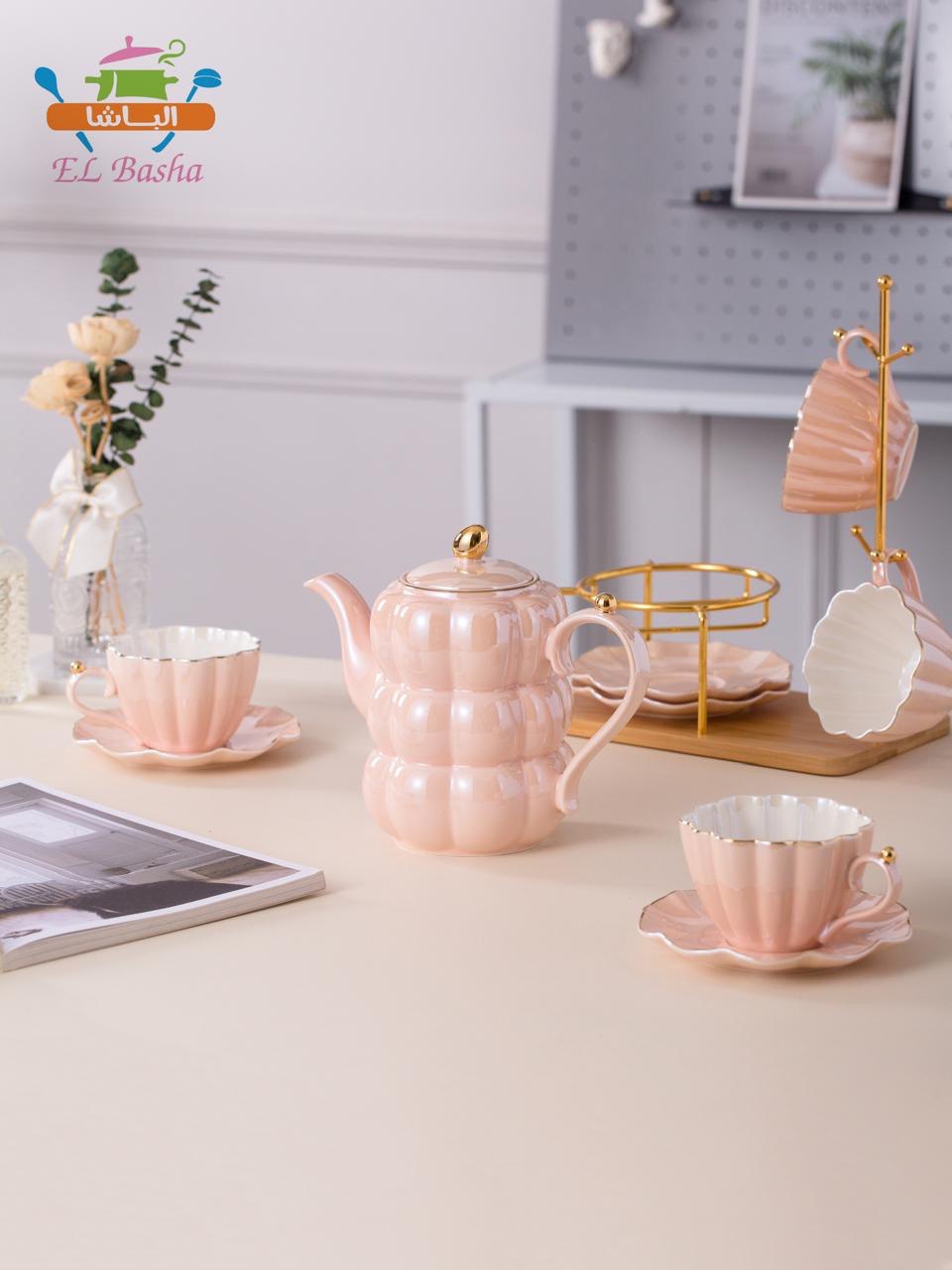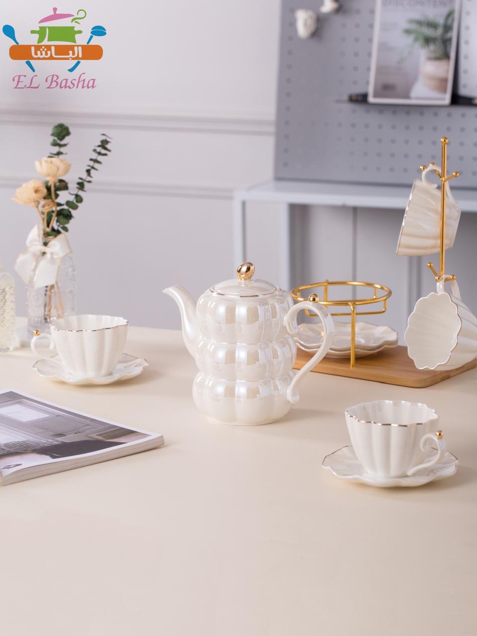 طقم شاي بتفاصيل تجمع بين العملية والرقي.