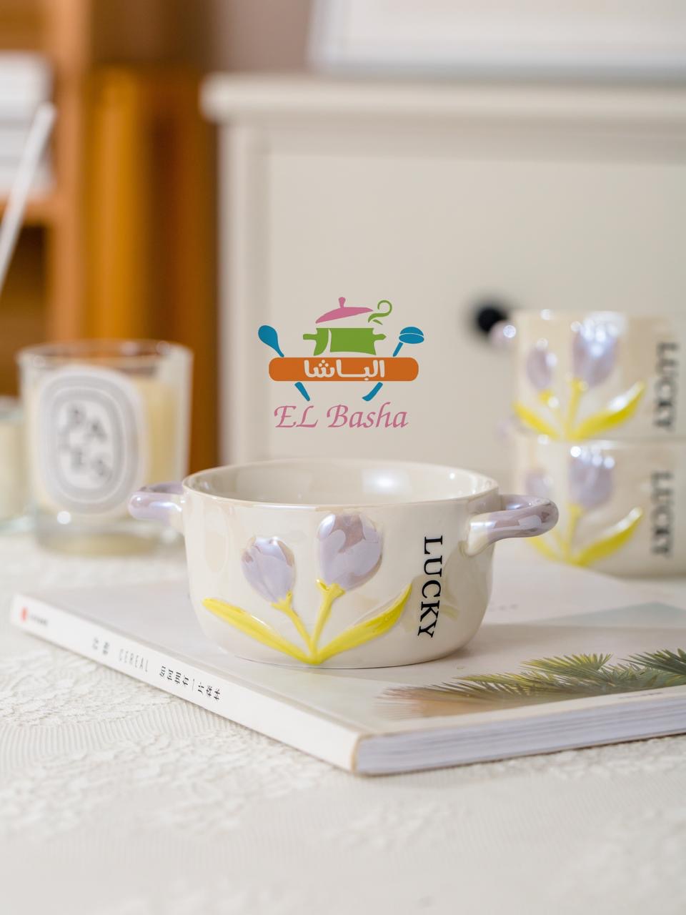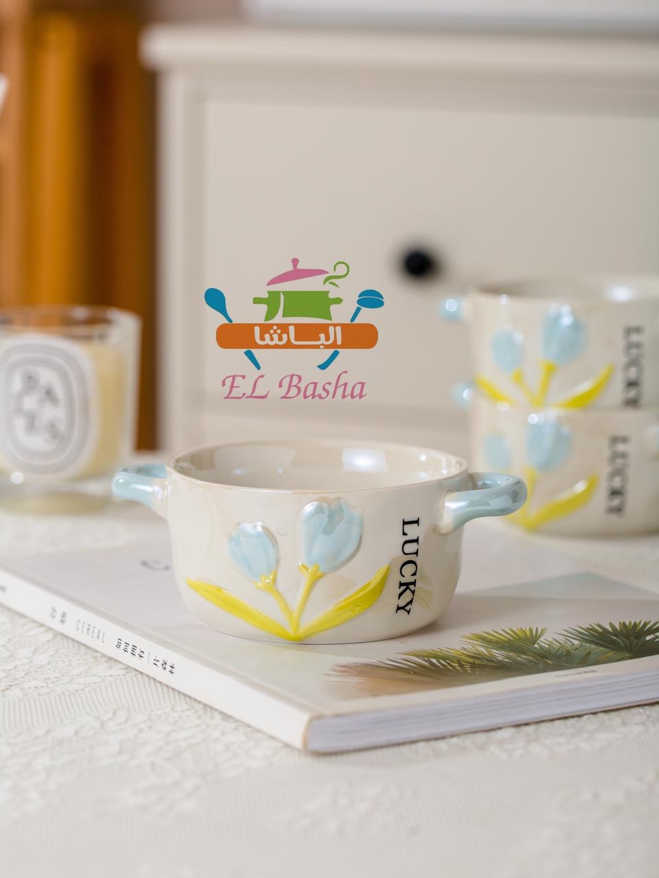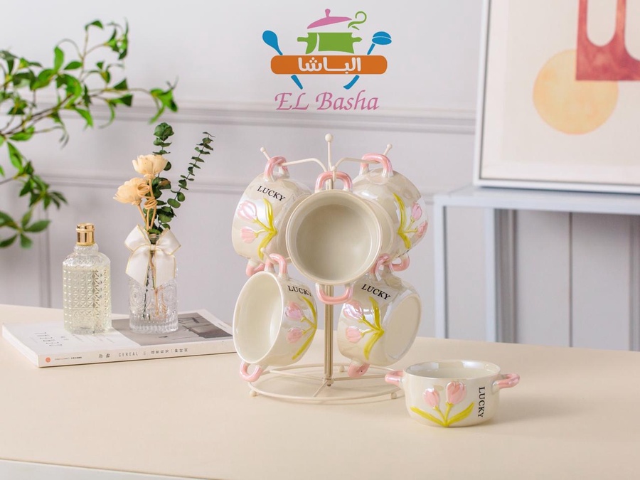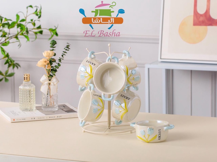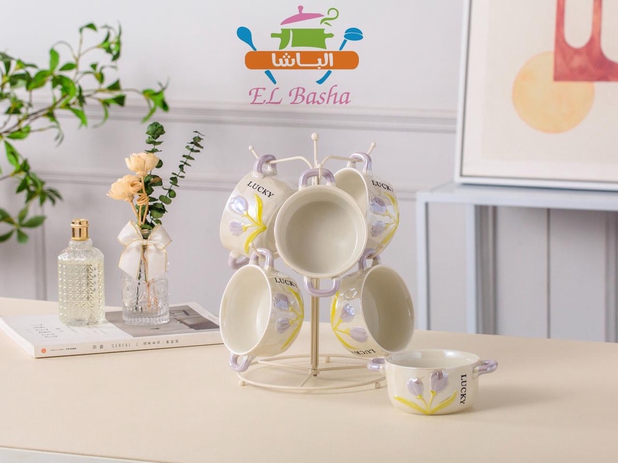 يضم 6 مجات شوربة + استند معدني مطلي باللون الأبيض