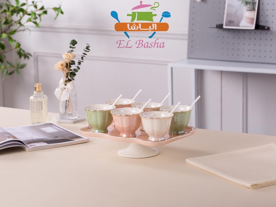 طقم جيلي وآيس كريم بورسلين لامع بالصينية – 13 قطعة