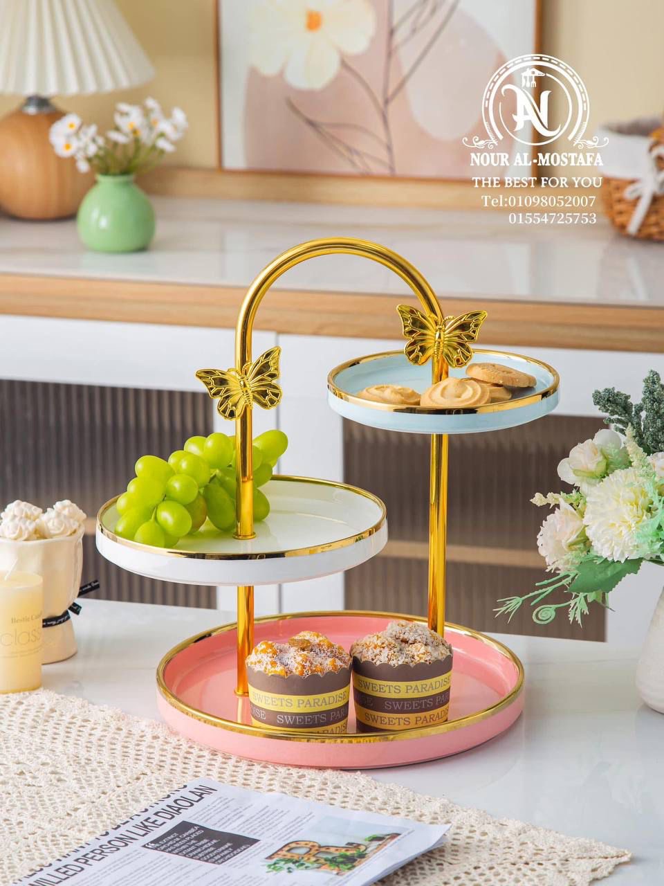 شيالة كحك بورسلين 3 طبقات – تصميم فاخر بفراشة معدنية