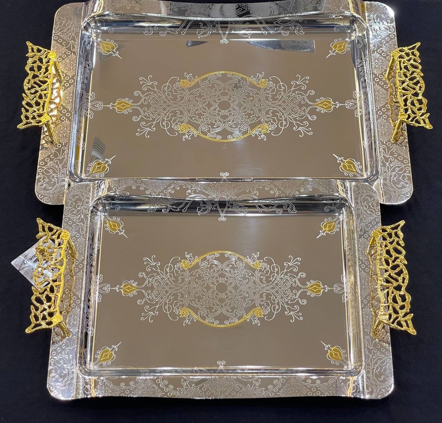 تفاصيل التقديم بتفرق، وطقم الصواني ده معمول علشان يضيف لمسة فخامة وشياكة حقيقية على سفرتك.