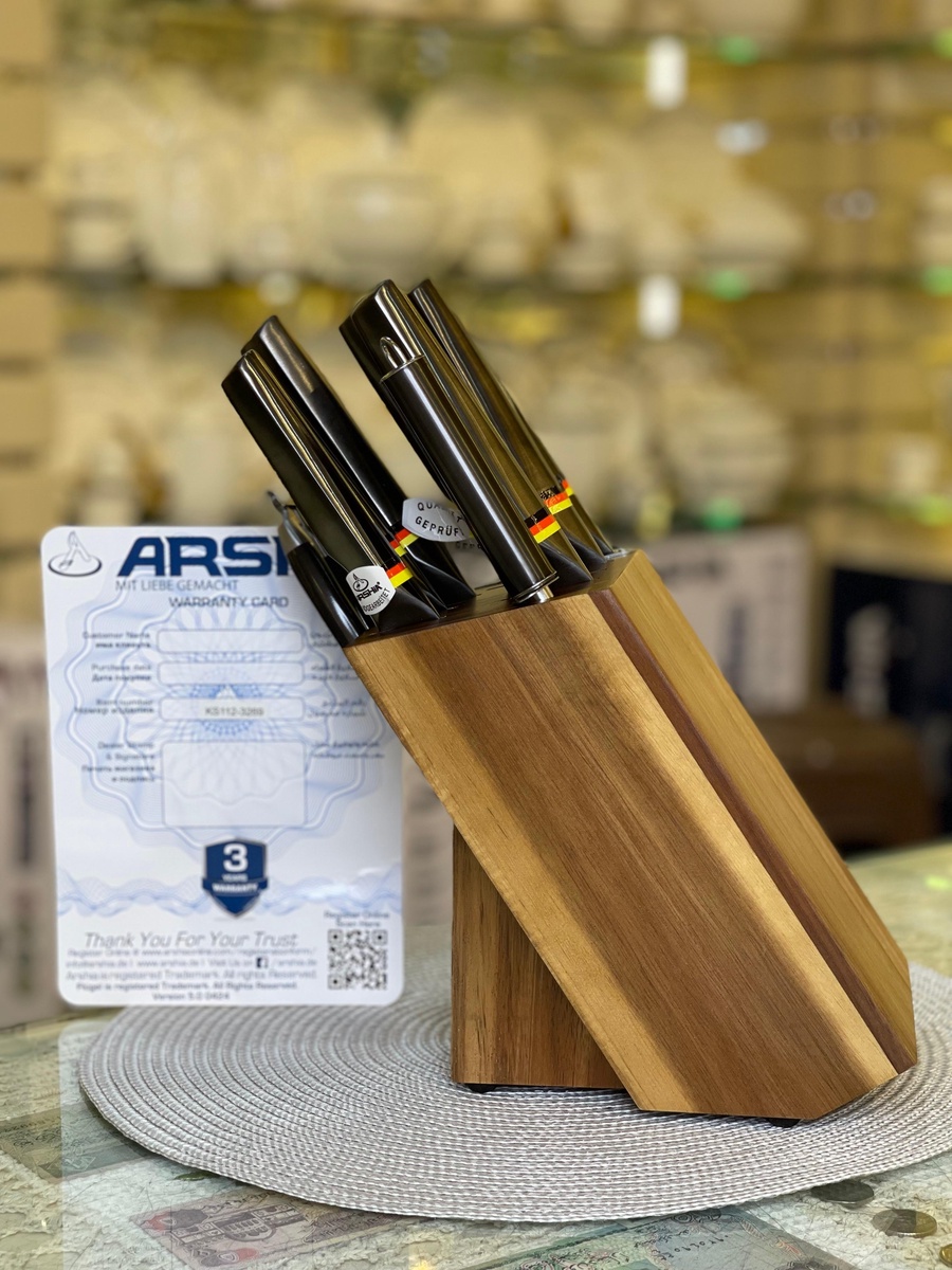 مناسب للتقطيع الدقيق والتحضير السريع، ويشمل أيضًا أداة شحذ للحفاظ على حدة السكاكين.