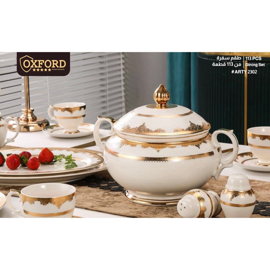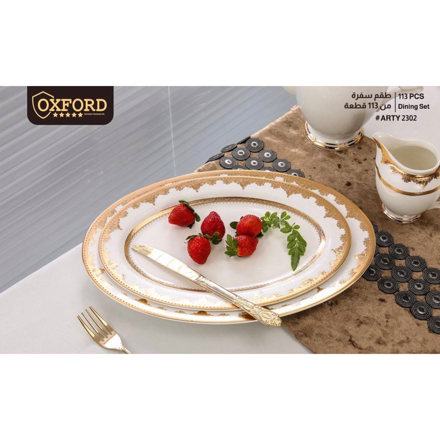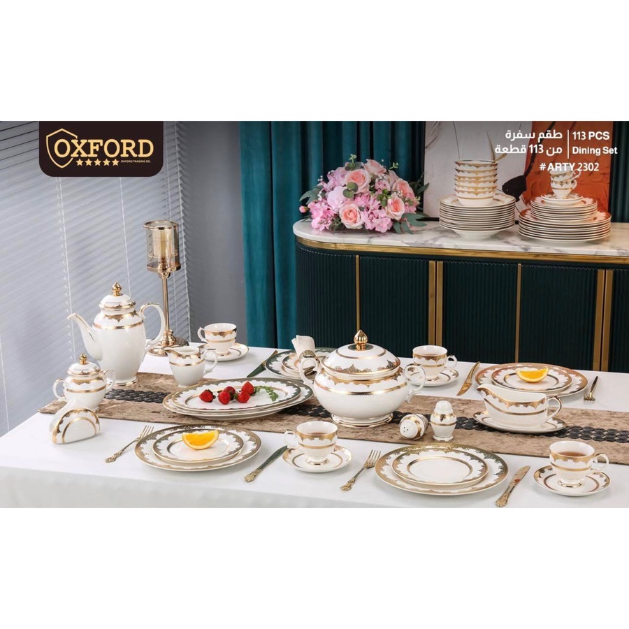 طقم صيني مستورد 113 قطعة – تصميم 3D مدور | OXFORD