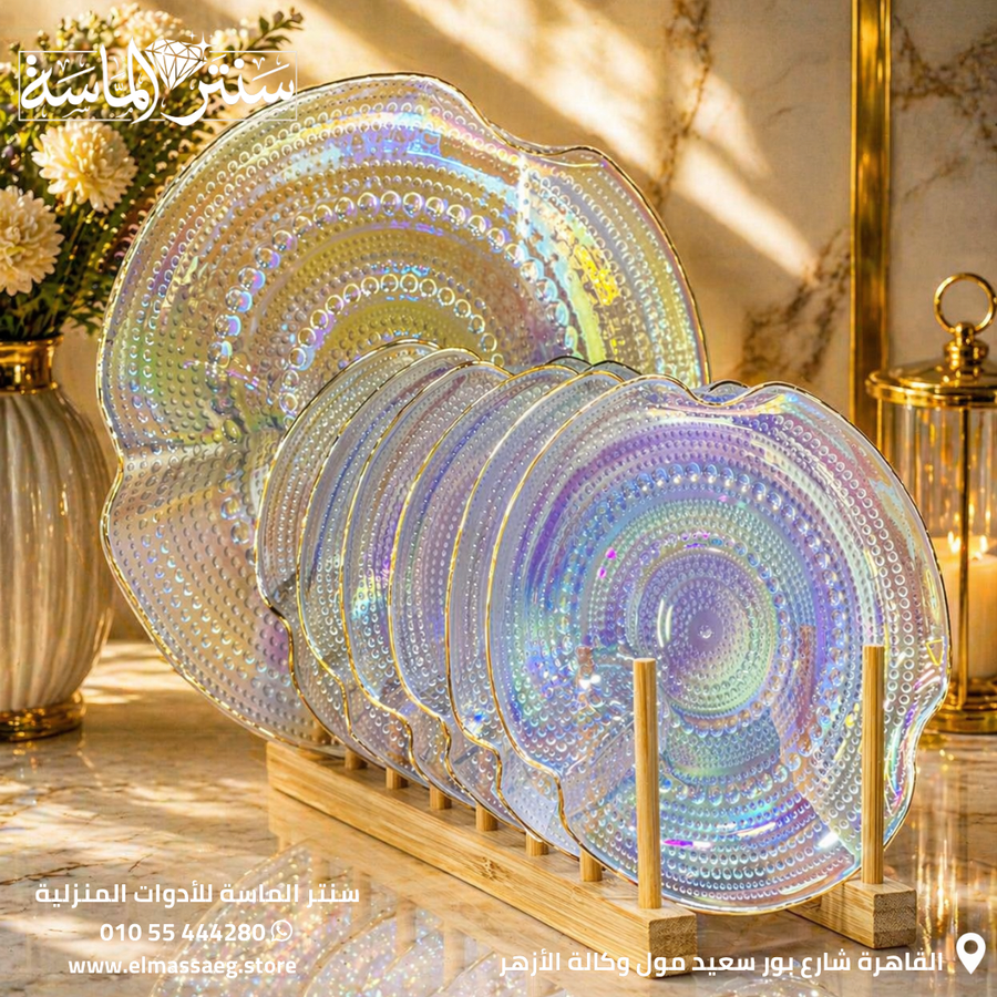 أطباق تقديم جاتوه زجاج بنقشة و بحواف ذهبية